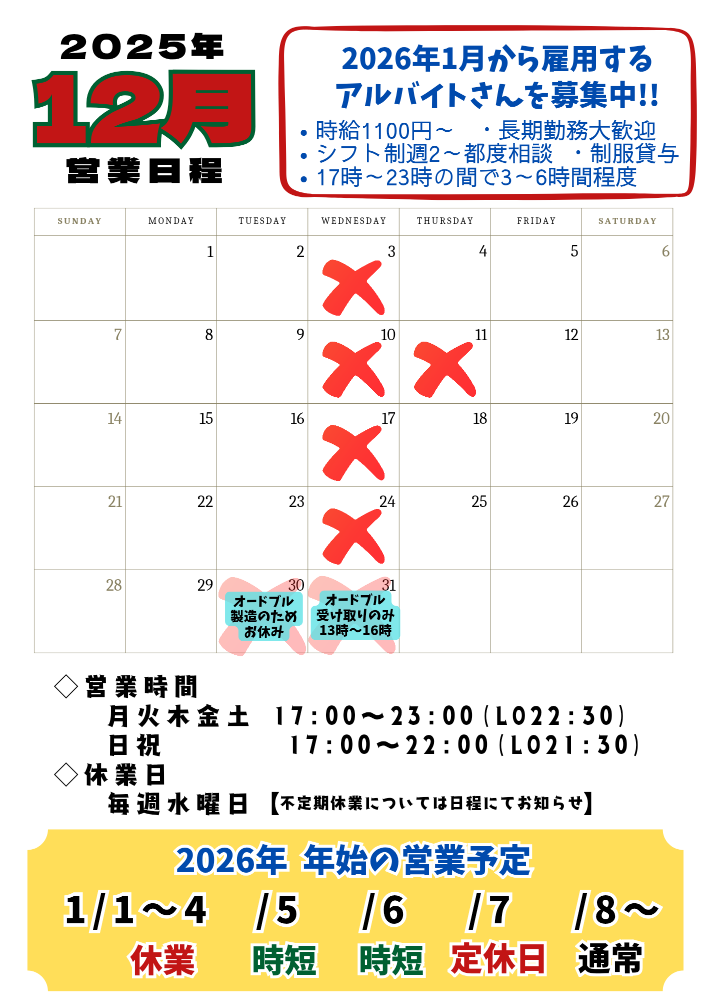 2025/11/1·2 総合文化祭出店の為店舗休業💤